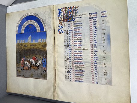 Les Très Riches Heures gilt als das berühmteste illustrierte Manuskript des 15. Jahrhunderts. Mit seinen 121 prachtvollen Miniaturen, darunter die legendären Kalenderblätter, eröffnet es ein faszinierendes Panorama des höfischen und bäuerlichen Lebens um 1400. Das Werk besticht durch seine künstlerische Raffinesse: stimmungsvolle Landschaften, perspektivisch durchdachte Bildräume, leuchtende Farben und die glanzvolle Verwendung von Gold machen es zu einem der vollendetsten Beispiele mittelalterlicher Buchmalerei.