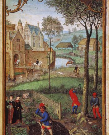 Auf der Kalenderseite für den Monat März werden Motive aus dem Leben des Adels mit ländlichen Szenen kombiniert. Diese Miniatur gehört zu einer kleinen Sammlung von acht Kalenderbildern (aufbewahrt in der British Library: März und Juni auf den Recto-Seiten, Dezember und Juli auf den Verso-Seiten – vier weitere befinden sich im Victoria and Albert Museum in London). Die Reihenfolge dieser Miniaturen lässt keine Schlussfolgerung darauf zu, dass sie für ein bestimmtes Buch vorgesehen waren. Vielmehr müssen sie vom Meister als Vorlagen für seine Werkstatt angefertigt worden sein.