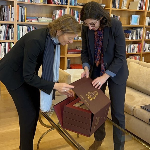 The transnational, huge facsimile project is carried out in cooperation with the Institut de France and companies from France, Germany, Italy and Spain - all experts in their field. It is a unique and faithful reproduction, limited to 990 copies each, making it possible to make Leonardo da Vinci's notebooks available to science and the world while protecting the original works.